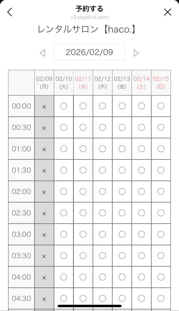 ②予約するスペースを選び、希望日時に空きがあればその日時を選びます。