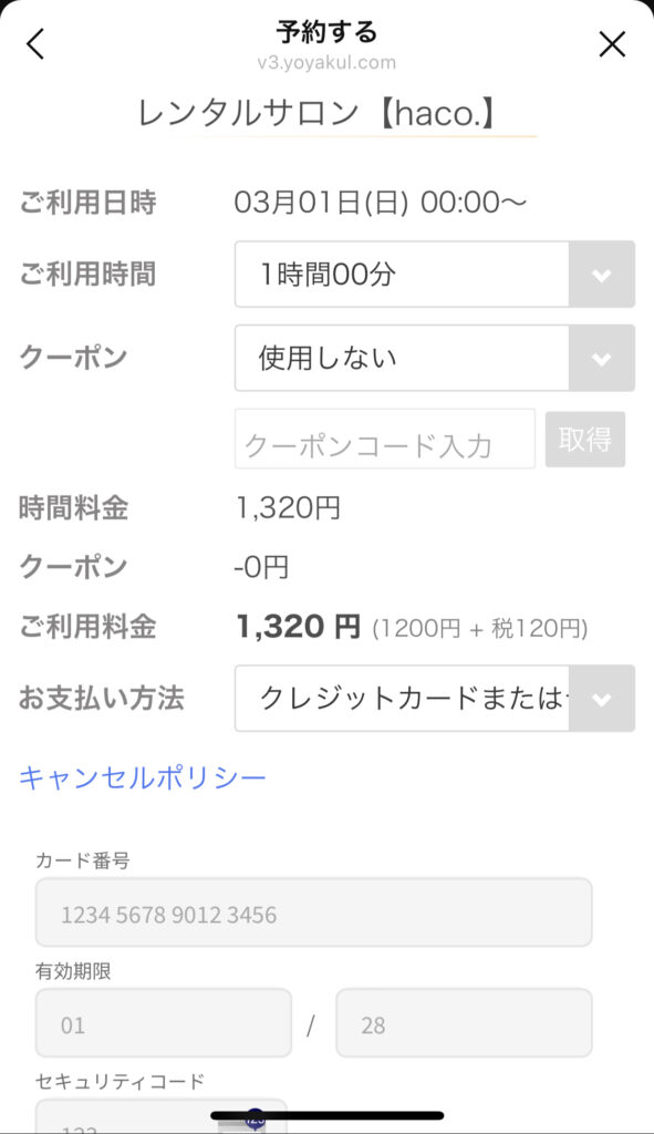 ③お名前・連絡先・クレジット情報を入力し、予約します。