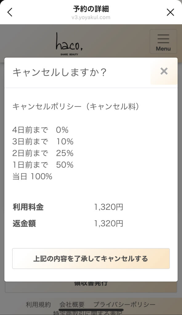 | 予約日の4日前まで | 0% |