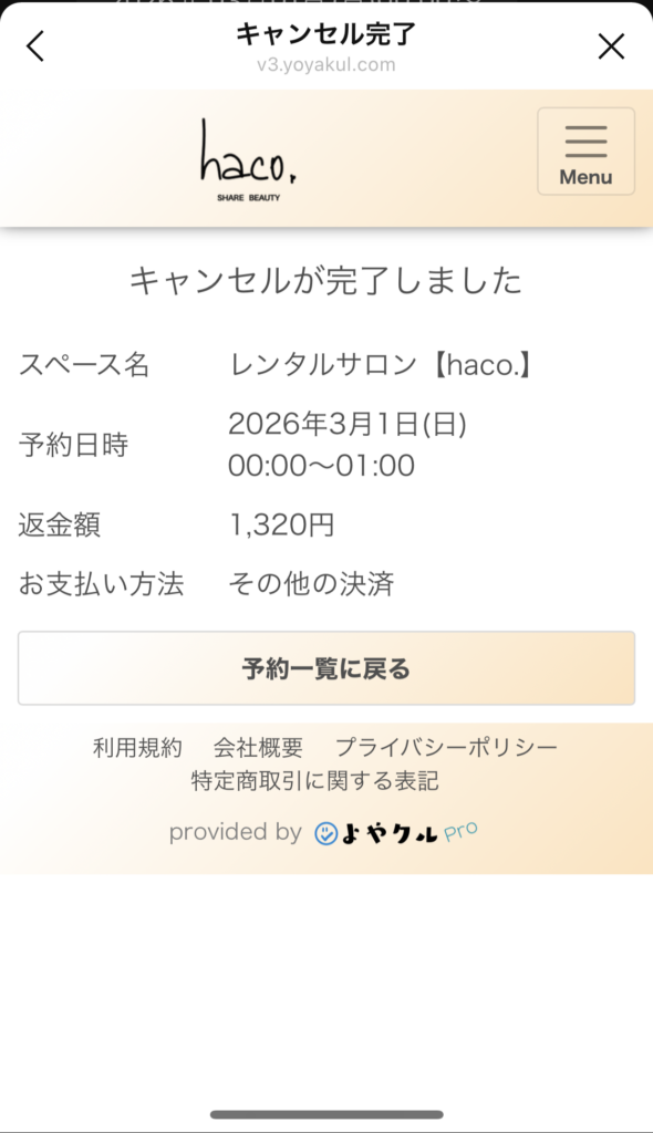 変更の場合は、変更した日時の案内などのメッセージが届きます。キャンセルした場合は、キャンセル完了のメッセージが届きます。